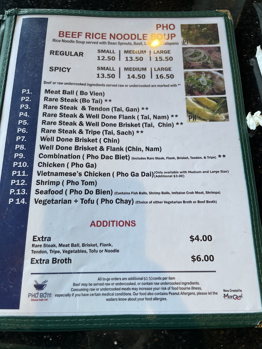 Phở Bờm, Vietnamese Noodle & Grill Menu